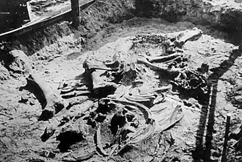 глубине 4,5 метра. Сначала они обнаружили коренной зуб. Дальнейшими работами руководил студент Института гражданских инженеров императора Николая I Алексей Иванович Миклашевский, который осознавал важность находки и принял